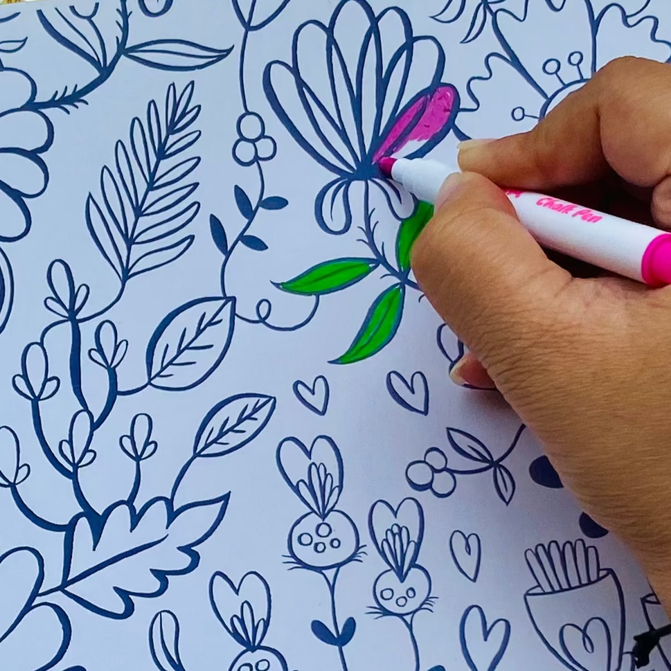 When the world feels full, colouring gives you something small to focus on. A line to follow. A space to fill. A quiet, ordinary way to come back to yourself. It works not because it's big but because it's simple. There's no right way. Just colours, and stillness, and the soft click of your brain relaxing.
