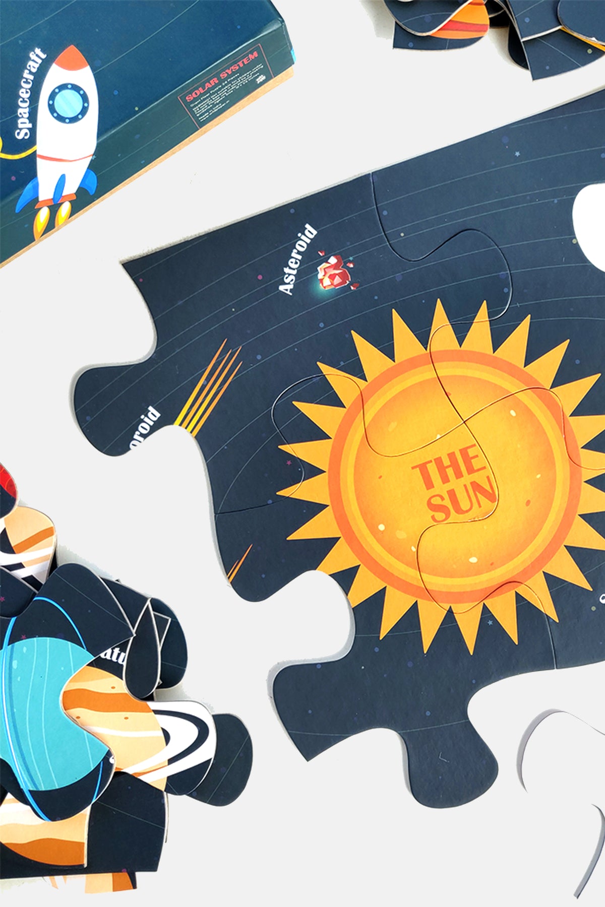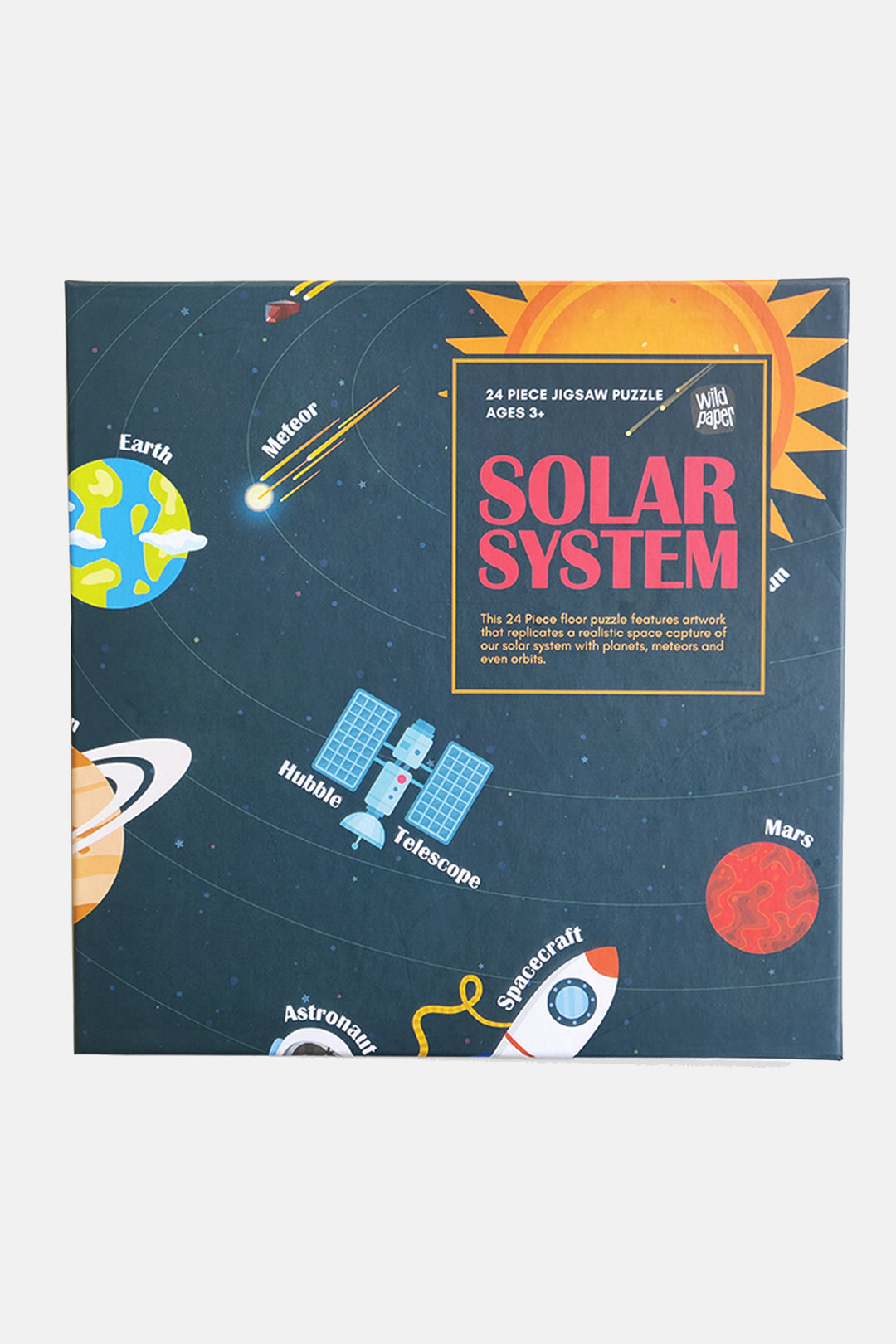 - FUN & EDUCATIONAL GIANT FLOOR PUZZLE with 24 pieces. This puzzle has chunky 4-inch pieces and finishes to a size of 16 x 24 inches. Features beautiful and original artwork that replicates a realistic space capture with planets, meteors, and even orbits.